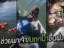คู่รักบังเอิญเจอสัตว์ขนปุยลอยคอกลางทะเลสาบ จึงเข้าไปช่วยชีวิตมันเอาไว้