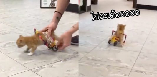 เจ้าตูบดีใจจนเก็บอาการไม่อยู่ เมื่อเห็นคู่หูที่พิการ เดินได้เป็นครั้งแรกในชีวิต